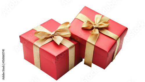 Obraz premium Two red gift boxes, gold ribbon
