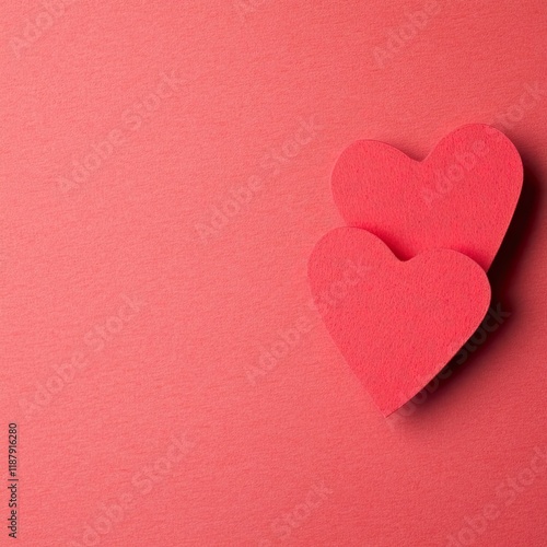 © Diio, Fototapeta premium Two Red Hearts on Red Background