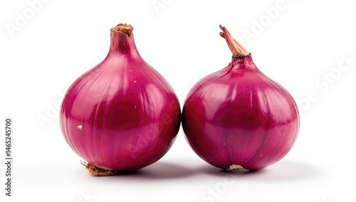 Fototapeta premium Two red onions, various angles, sharp focus, pure white backdrop, stock...