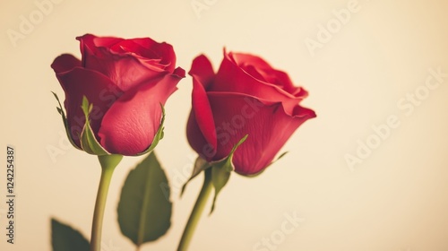 © ibhonk, Obraz premium Two Red Roses Gracefully Displayed Together