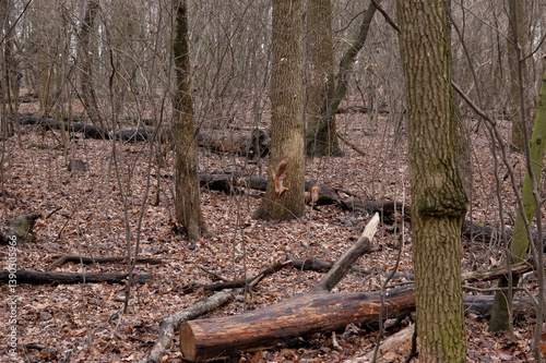 Obraz premium two red squirrels playing in the fall forest.
