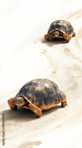 © Chon.Design, Obraz premium Two resting turtles on sandy beach