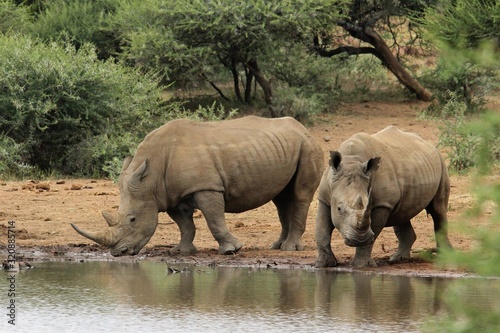 © Nel, Fototapeta premium Two rhino at a waterhole