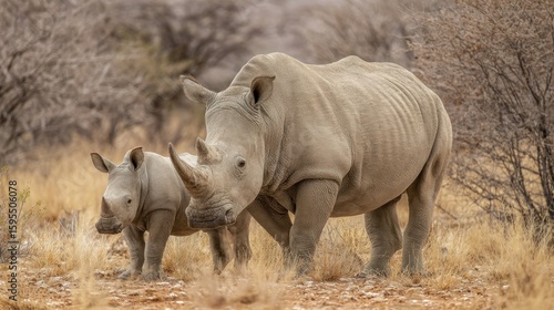 © Gra, Fototapeta premium Two rhinos in a dry savanna
