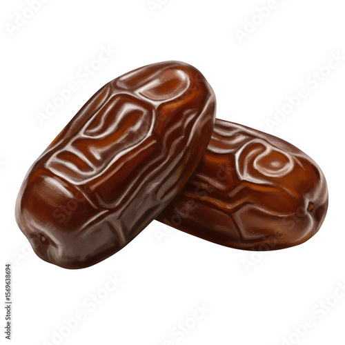 Obraz premium Two ripe medjool dates with rich brown skin isolated on transparent background