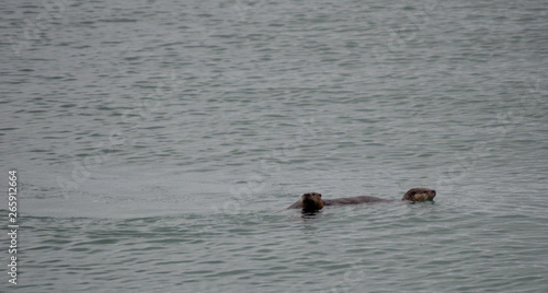 Obraz premium Two River Otters Swimming, Bowman Bay, Deception Pass State Park, Washington