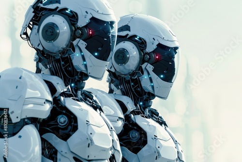 Fototapeta premium Two robots standing next to each other. Suitable for technology concept