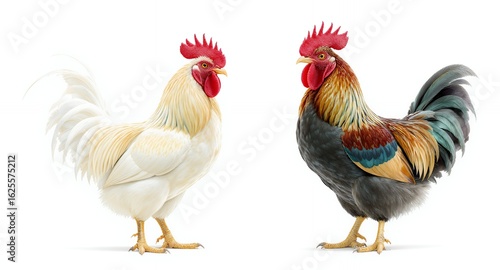 © Hassan, Fototapeta premium Two Roosters on White Background