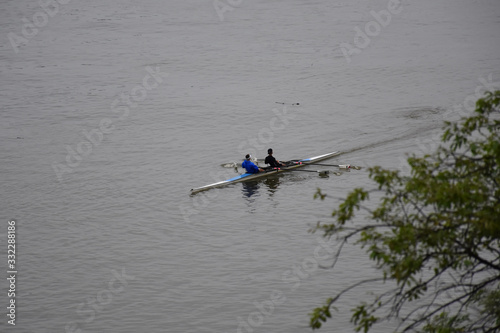 © vericafoto, Naklejka premium Two rowing kayaks sail across the Danube