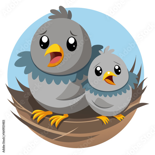 Fototapeta premium Two sad baby birds in a nest looking for food