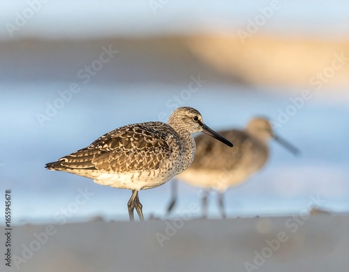 © sinau, Obraz premium Two sandpipers on a beach at dawn