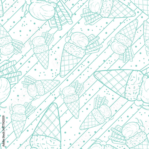 © Zarya, Fototapeta premium Two Scoops Line Art Ice Cream Illustration as Seamless Surface Pattern Design