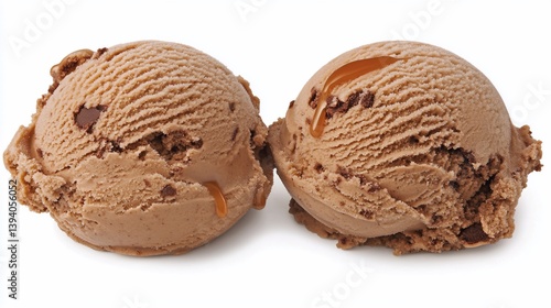 Fototapeta premium Two scoops of rich chocolate ice cream with caramel drizzle