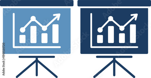 Fototapeta premium Two screens on stands displaying bar graphs with arrows pointing up