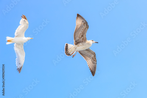 © Iurii Gagarin, Obraz premium Two seagulls flying in the sky