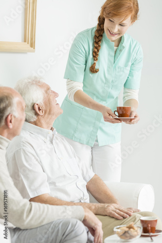 Obraz premium Two seniors looks at nurse
