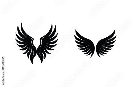 © kajallata, Obraz premium Two Sets Of Black Angel Wings On An Isolated White Background