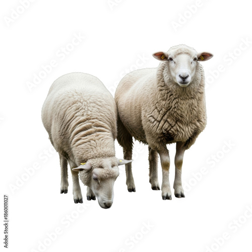 Fototapeta premium Two sheep standing together isolated on transparent background