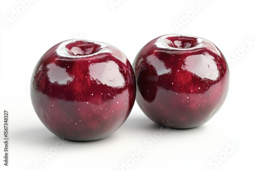 Obraz premium Two Shiny Deep Red Apples on White Background shiny two fruit red apples dark red crimson maroon ai