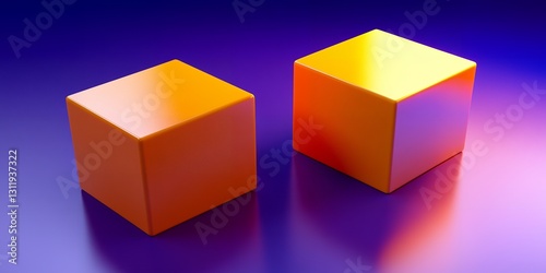 Obraz premium Two Shiny Orange Cubes on Vibrant Purple Gradient Background 3D Render