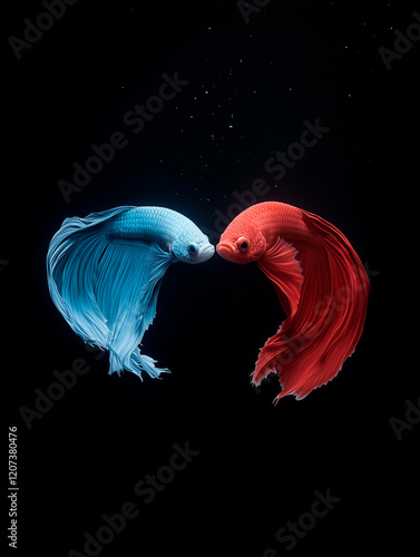 Obraz premium Two Siamese Fighting Fish in Opposite Colors