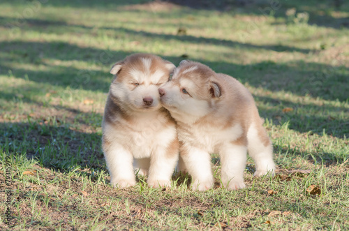 © lalalululala, Fototapeta premium Two siberian husky puppies kissing