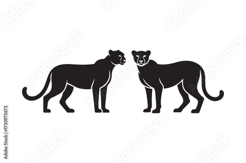 © Laboni, Obraz premium Two silhouetted black panthers facing each other