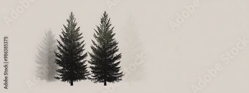 © Raffaza, Obraz premium Two Silhouetted Pine Trees with Shadows Against a Light Grey Background