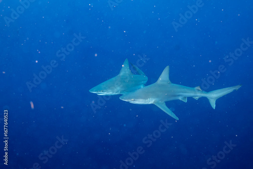 © Griffin, Fototapeta premium Two silky sharks in the ocean