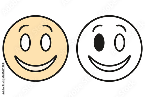 Fototapeta premium Two simple smiley face illustrations one colored and one in line drawing