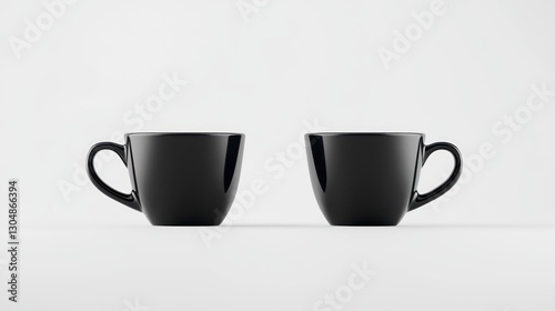 © Alexander, Obraz premium two sleek black ceramic cups stand in harmonious symmetry against a stark white backdrop creating a minimalist and elegant composition