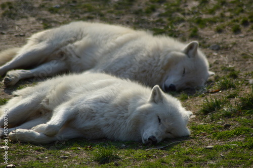 Fototapeta premium Two sleeping Alaskan Tundra Wolfs