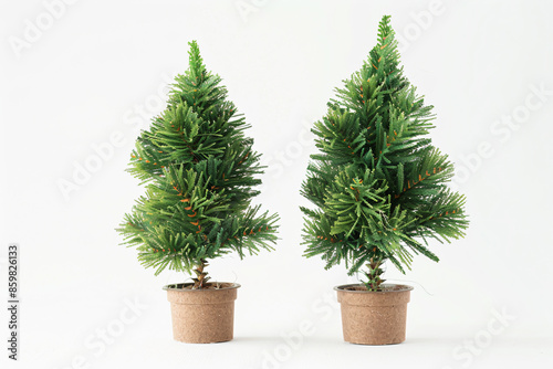 Fototapeta premium two small trees in a pot on a white surface