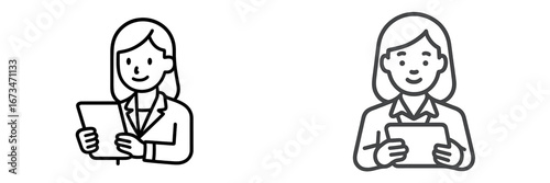 © Bundi, Obraz premium Two smiling women using tablets in a professional setting