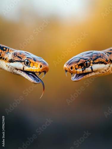© AI_Imaginator, Obraz premium Two snakes facing each other, close-up.