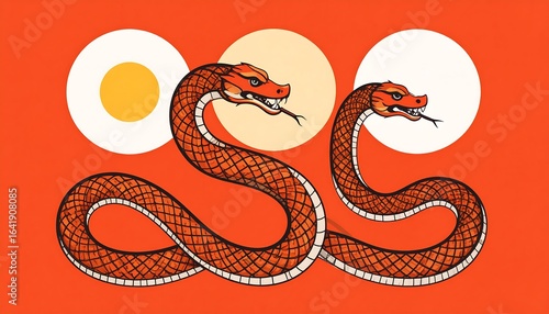 Fototapeta premium Two snakes on a vibrant background