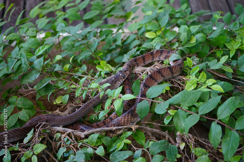© louisnina, Naklejka premium Two snakes on tree branch closed up image dangerous in the wild