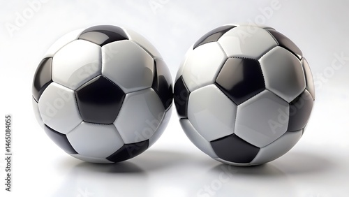 © Musabbir Ahmed, Obraz premium Two soccer balls are positioned side by side against a plain isolated on white background