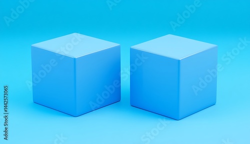 Fototapeta premium Two solid, light-blue cubes on a plain blue background