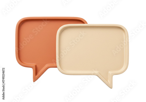 © Nicolas, Naklejka premium Two speech bubble trays isolated, orange and beige ceramic dishes for home decor and conversation starters