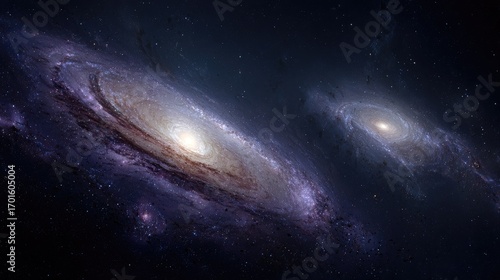 Obraz premium Two Spiral Galaxies In Dark Space