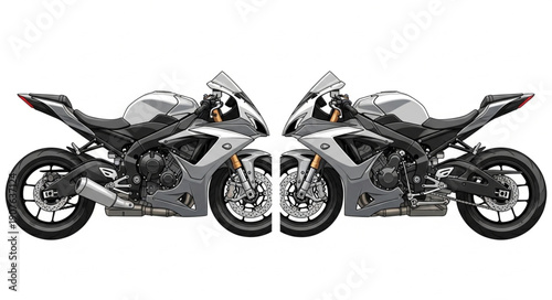 Obraz premium Two Sport Motorcycles Mirrored on White Background.