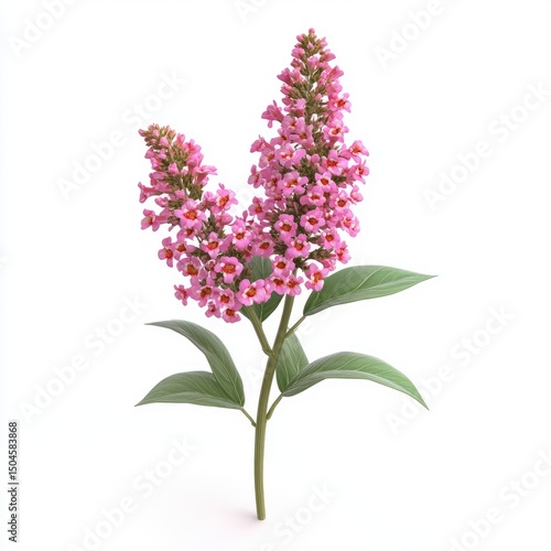 Fototapeta premium Two sprigs of vibrant pink blossoms, detailed close-up.