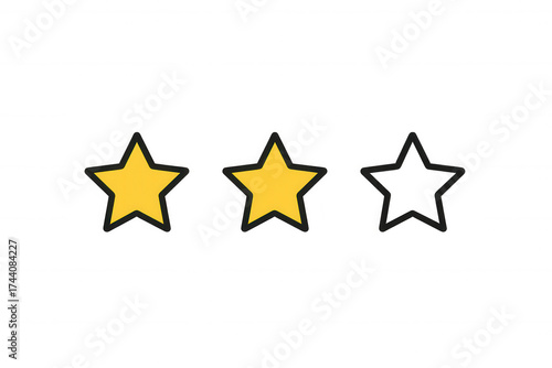 Obraz premium Two star rating indication. Feedback and review icon for customer service satisfaction, quality, and user experience concepts
