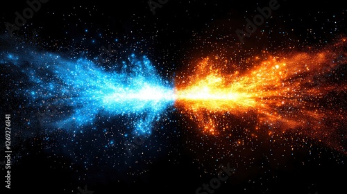 © Amporn, Obraz premium Two Stars Colliding in Cosmic Display of Vibrant Blue and Orange Colors