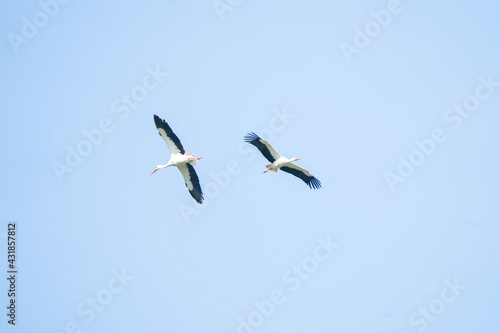© Dasya - Dasya, Fototapeta premium Two storks fly high in the blue sky