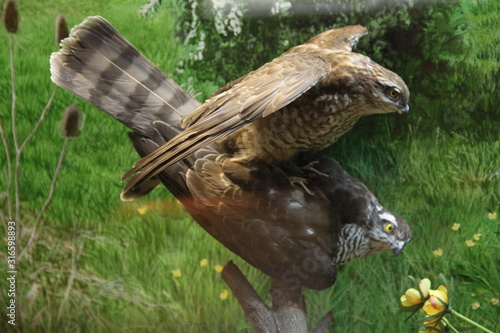 © Estelle R, Obraz premium Two stuffed kestrel birds mating