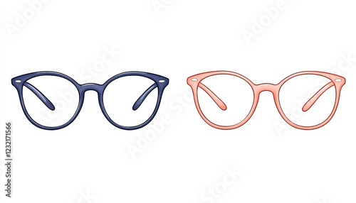 Fototapeta premium Two stylish pairs of eyeglasses displayed side by side against a clean white...