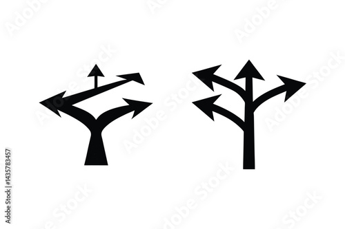 Fototapeta premium Two Stylized Arrow Directional Sign Symbolizing Different Paths Forward Choice Concept