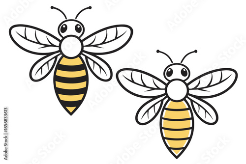 Fototapeta premium Two stylized bee illustrations with vibrant colors and clean lines